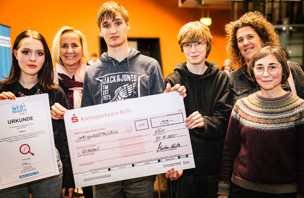 Am Dienstag den 2.12.2025 sind wir, die Drachenklasse, mit 7 Schülern bei der Finalrunde des Webbewerb der Kölner Rundschau im Mediaparrk in Köln angetreten. Dort angekommen wurden wir mit Buffet begrüßt und anschließend wurde der Ablauf der Finalrunde von einem Moderator erklärt. Es sollte drei Durchläufe geben, für die jeweils 15 Minuten Zeit gegeben waren. Im Ersten dieser Durchläufe mussten wir recherchieren, ob die gegebene Aussage der Wahrheit entspricht oder nicht, im zweiten und dritten Durchgang war es die Aufgabe, die eine oder mehreren richtigen Antworten bei Multiple-Choice-Aufgaben zu ermitteln. Wir konnten die Aufgaben immer sehr schnell bearbeiten, sodass wir uns nach Vollendung der zweiten Teilrunde an die Spitze der Wertungsliste gekämpft hatten. In der letzten Teilrunde taten wir uns jedoch etwas schwerer und erreichten schlussendlich den fünften Platz. Bei der Siegerehrung erhielten wir einen Scheck über 250€ für unsere Lerngruppe. Alles in Allem war der gesamte Webbewerb, aber insbesondere die Finalrunde, eine wertvolle Erfahrung.
