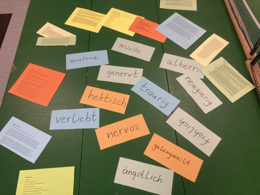 In der Oberstufenklasse hat der Vorlesetag für viele Lacher gesorgt. So mussten die Schüler*innen kreativ werden und verschiedene Textgattungen (von Wettervorhersage bis Liebesszene) in einer vorgegebenen Emotion vortragen – von gelangweilt bis hektisch, von verliebt bis traurig… Hört es euch selber an!